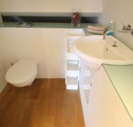Measured at floor level. Superb gable window overlooking the garden and farmland, two radiators, door to side with glass protector. Fitted wash hand basin with a glass surround and low level WC, four built-in storage cupboards, solid oak flooring, recessed downlights and floor level lighting.