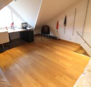 An ‘L’ shaped room with windows to two aspects, exposed timbers to three walls, access to roof space, ten recessed downlights, radiator, solid oak floor.
