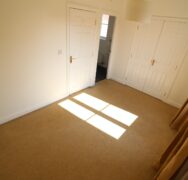 - Bedroom Two – 4.63m x 2.96m – Freshly painted walls and woodwork. Double glazed window, double radiator, fitted wardrobe with mirrored glass & carpet.Bedroom Three – 4.0m x 3.0m (into wardrobe – 3.0m x 0.61m) – Freshly painted walls and woodwork. Double glazed window, Double radiator, carpet & loft access.
