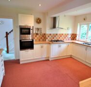 The Kitchen Overlooks the Rear Garden and is Fully Fitted with Cream Shaker Units and Oak Effect Laminate Worktops. Appliances Consist of 5 Ring Gas Hob, Extractor, Integrated Dishwasher, Single oven and Combination Oven. Door though To Utility Room with Side Access door, and Integral Garage Door.