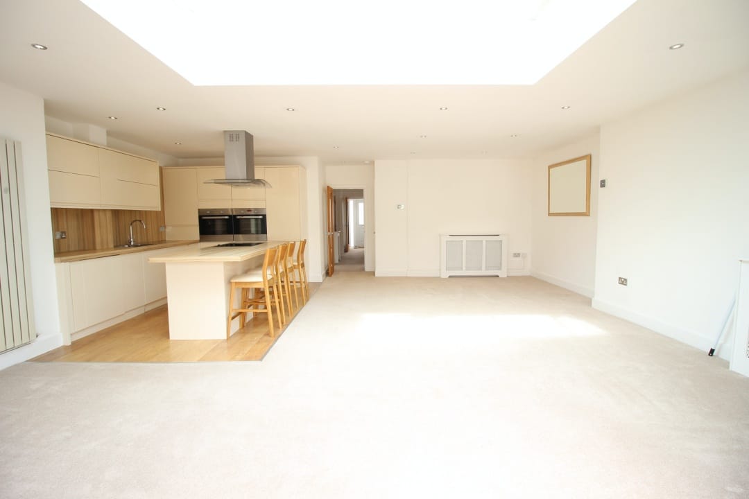 - Spacious open-plan living/kitchen area with orangery-style skylight and bi-fold doors to the garden