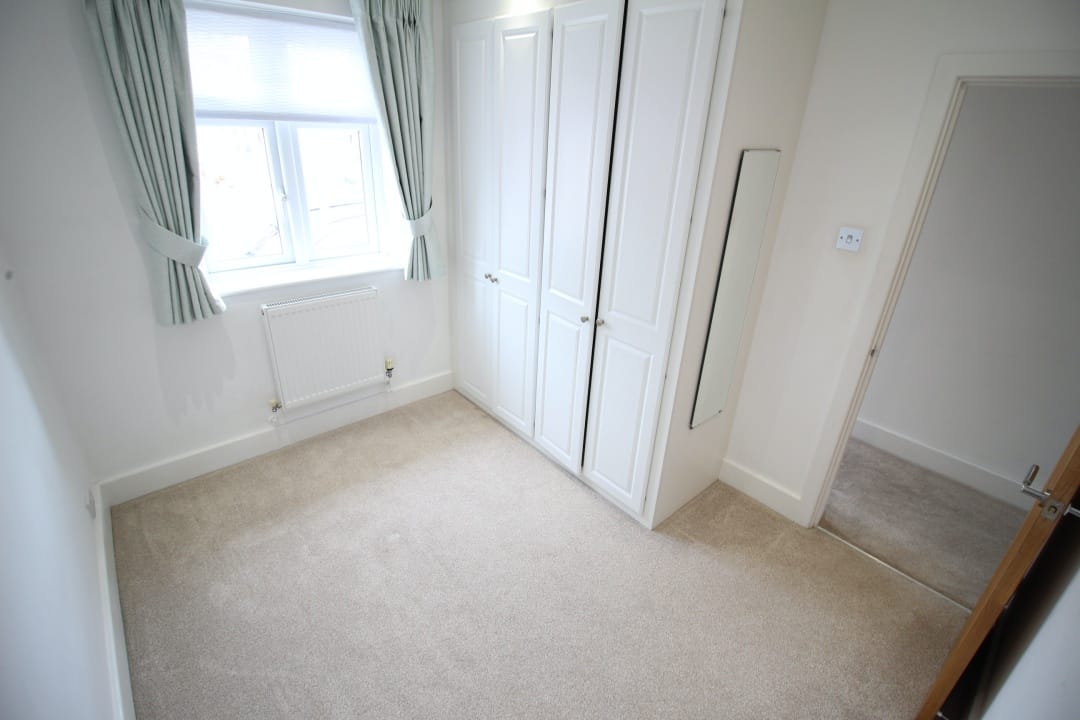 This well-appointed property boasts three good sized bedrooms, including a luxurious principal bedroom complete with bay window, fitted wardrobes, and a sleek en-suite shower room. The second bedroom also benefit from fitted storage, soft beige carpets, and ample natural light.