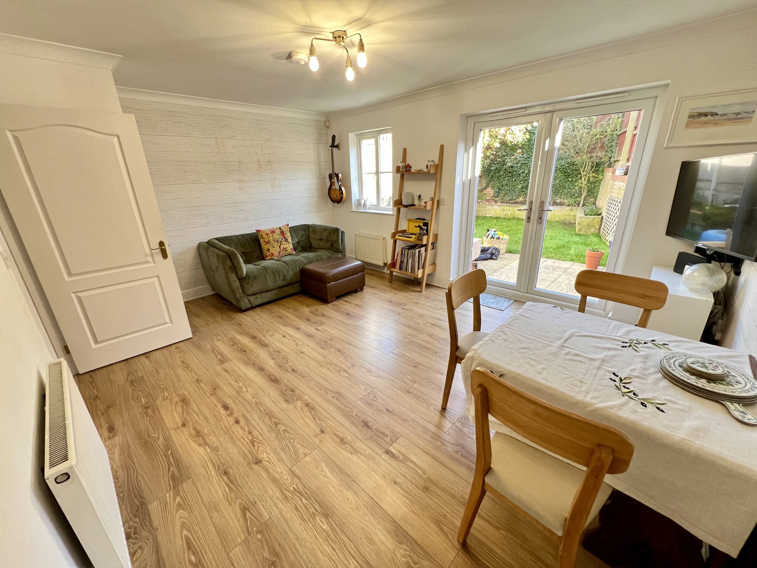 The ground floor features a bright and spacious living room, ideal for relaxing and direct access to the garden, creating a sociable space for everyday life. A fully fitted kitchen with modern units, plus a ground floor WC adds further convenience.